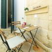 Al primo piano, una scala interna conduce al bagno completo con doccia e all’accesso diretto al terrazzo privato, un angolo esclusivo dove il sole del Salento bacia ogni mattina e le serate si riempiono di stelle.
